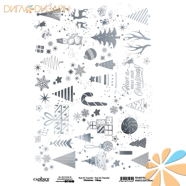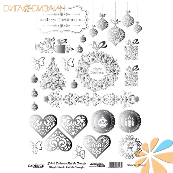 MAGIC TOUCH RUB ON TRANSFER-SILVER изображение для переноса 0006 елки ангелы 30*42 см