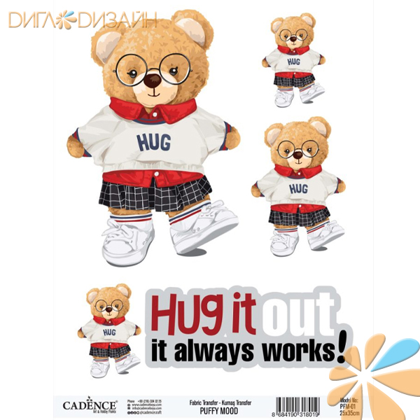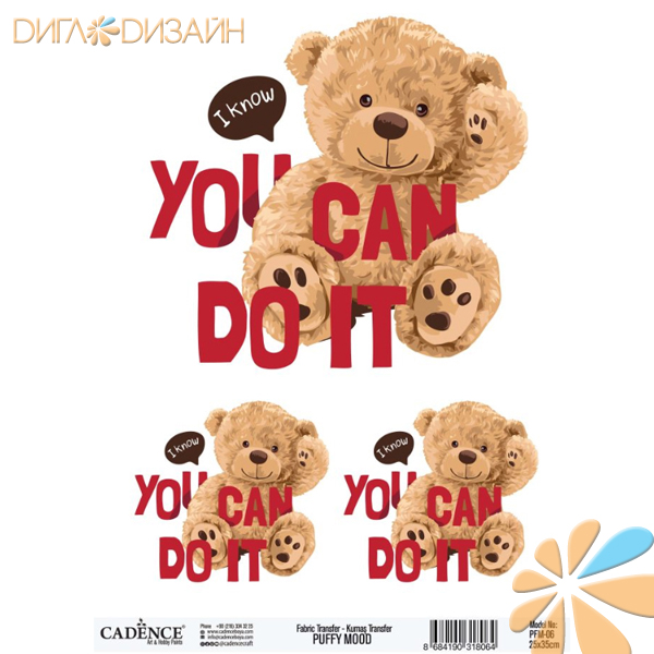 PUFFY MOOD / Cadence (Турция) Показать все Артикул и код Цвет Характеристики товара Единица 06070000125X35 39932 Трансфер для ткани PUFFY MOOD Fabric Transfer PFM-01 25x35см 06070000425X35 39933 Трансфер для ткани PUFFY MOOD Fabric Transfer PFM-04 25x35см 06070000525X35 39934 Трансфер для ткани PUFFY MOOD Fabric Transfer PFM-05 25x35см 06070000625X35 39935 Трансфер для ткани PUFFY MOOD Fabric Transfer PFM-06 25x35см